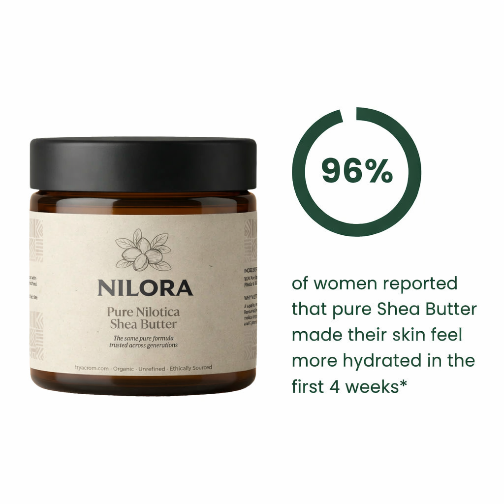 Most body lotions and even other shea butter products are either highly refined (which strips away beneficial compounds) or mixed with water and fillers that evaporate quickly. Pure Shea Butter by Nilora™ is 100% raw and unrefined, which means all the natural vitamins, fatty acids, and protective compounds are preserved. It creates a breathable seal over your skin rather than just adding temporary moisture. That's why it lasts longer and addresses the barrier issue that regular lotions only address on the surface. And it's all 100% natural and safe!